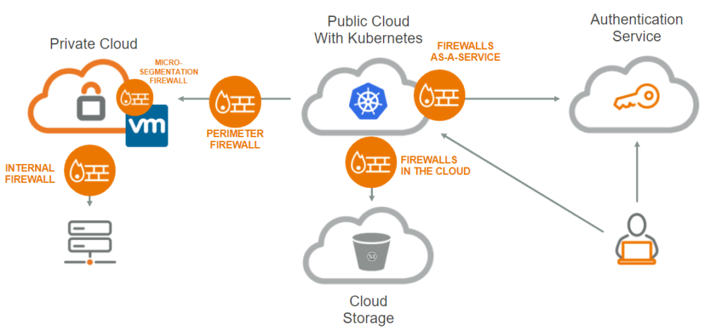 - “Firewalls” that manage E-W access: such as Security Groups in the cloud and Network Policies in Kubernetes