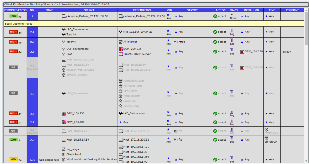 - Reduce shadowing as much as possible. You can detect partially shadowed rules with Policy Analysis.