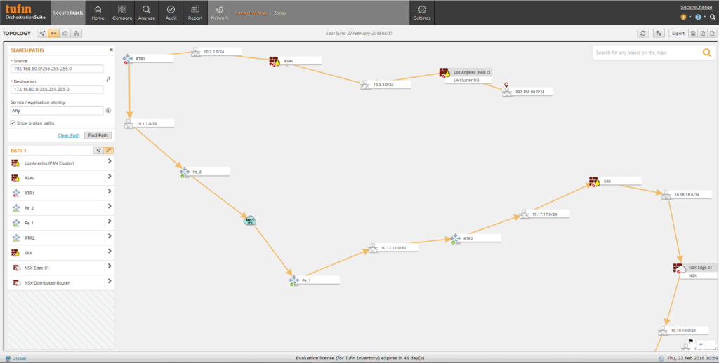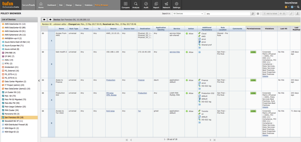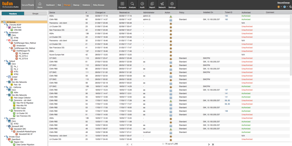 Tufin Orchestration Suite’s real-time visibility into all firewall and security changes across the enterprise provides clear insights into network connectivity and policy changes, with alerts for potential new security risks. With this real-time visibility, trouble-shooting is simple and quick. SecureTrack provides firewall administrators and security teams with the tools required to rapidly understand and manage their enterprise network security.