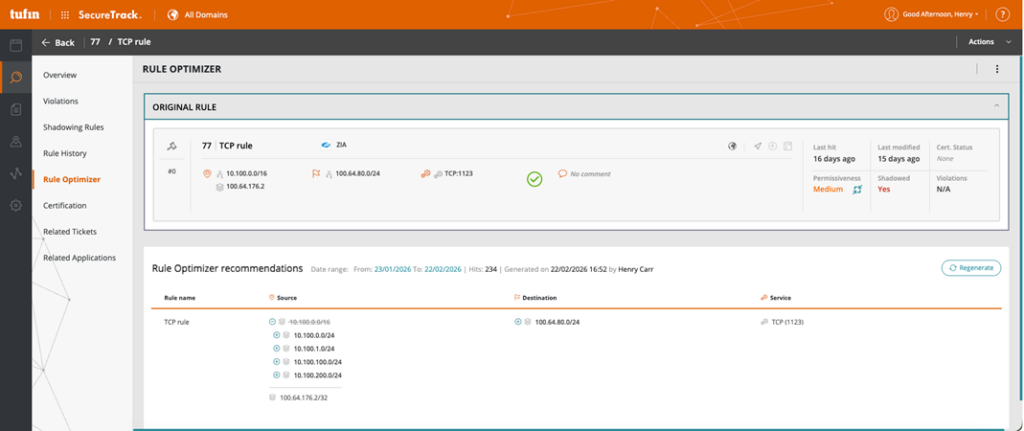 In addition, Tufin’s Rule Optimizer now supports ZIA. Rule Optimizer analyzes observed traffic usage and recommends narrower rule definitions based on actual connectivity patterns. This helps organizations reduce overly permissive access while preserving required application connectivity across their Zscaler and broader hybrid environments.