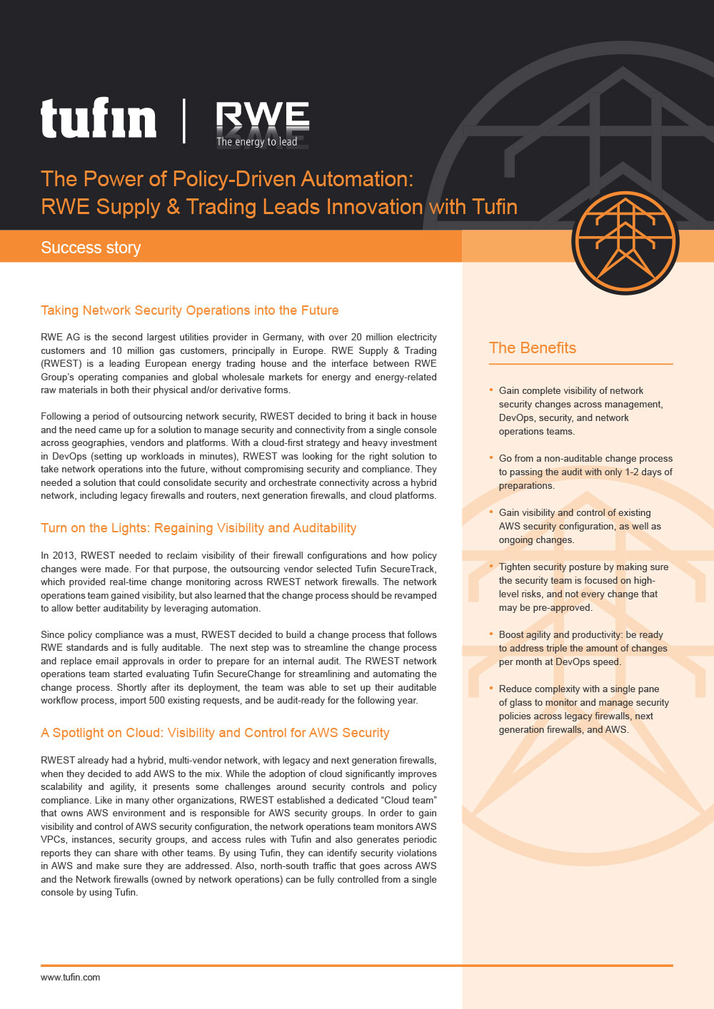 Semi-manual to fully automated (zero-touch) provisioning that adheres to your security policies. Network and security teams who use Tufin are able to significantly reduce the time and effort they spend on network access changes and firewall management tasks, allowing them to devote resources to more strategic projects.