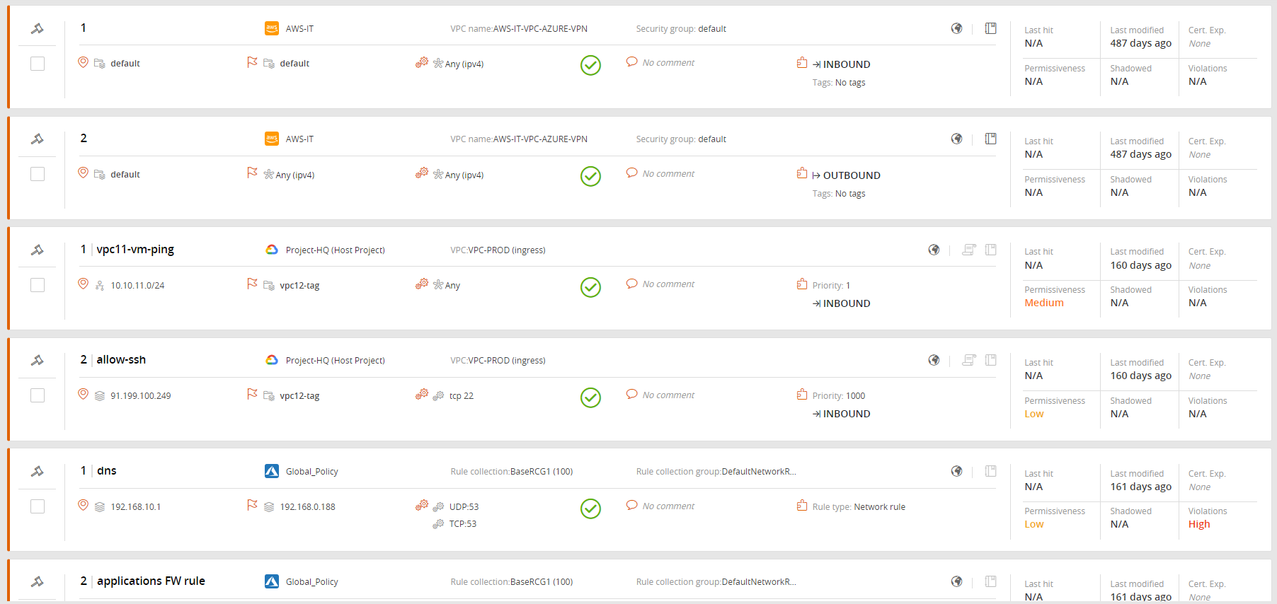 - Gain application-level and network-level visibility into the state and configuration of cloud-based firewalls and security groups.