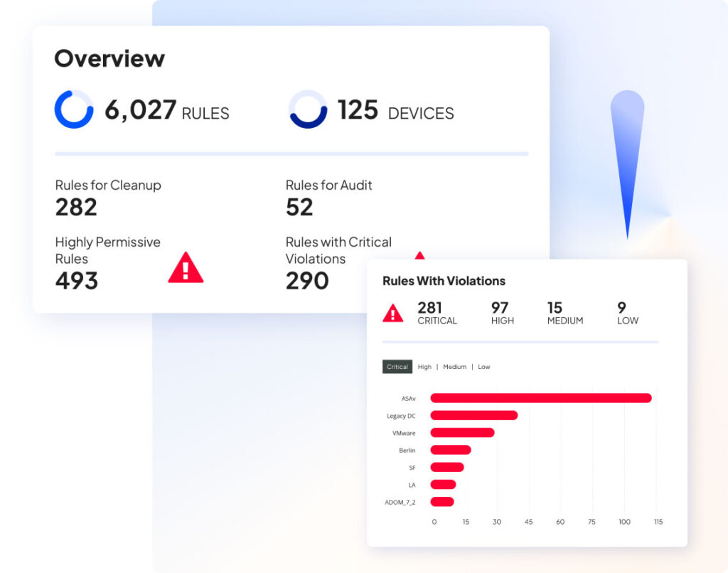- Centralize network security policy management, risk mitigation and compliance monitoring across firewalls, NGFWs, routers, switches, SDN and hybrid cloud
