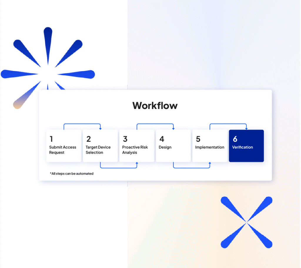 - Reduce network change SLAs by up to 90% with network change design and rule lifecycle management