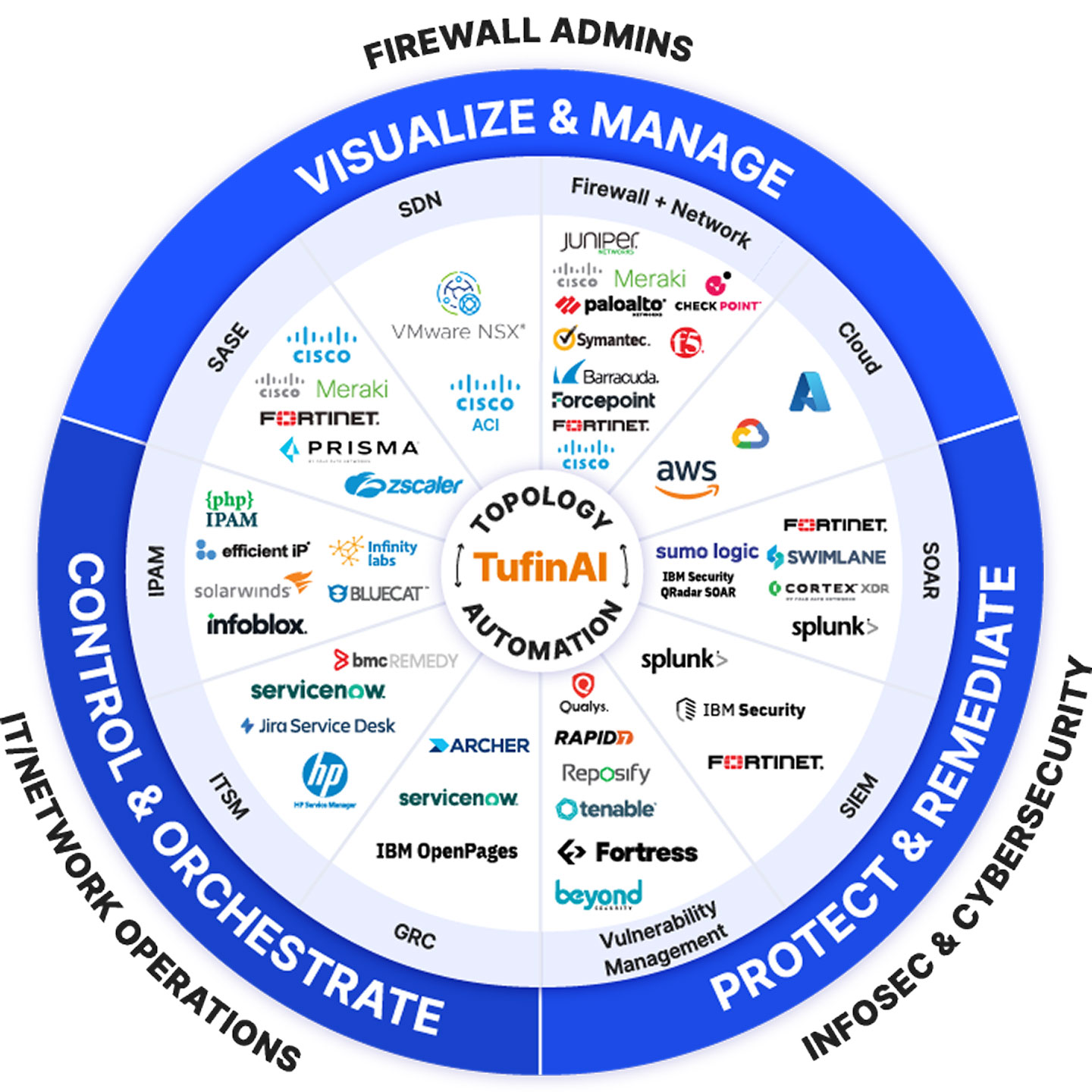 Tufin integrates with leading technology platforms to deliver seamless, powerful solutions that meet customers’ critical requirements and solve crucial business challenges.